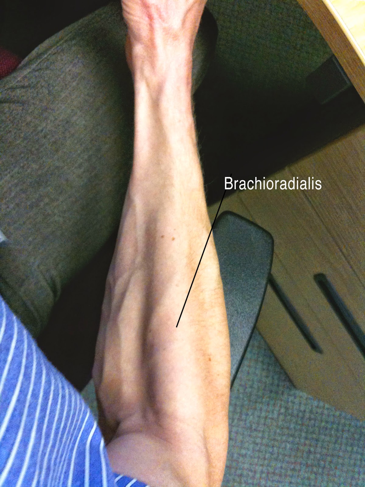 Image 7. The BR scan easily be seen by flexing your right arm to 90 degrees, closing your fist in a neutral grip, and then taking your opposite hand and pressing down on the closed fist.